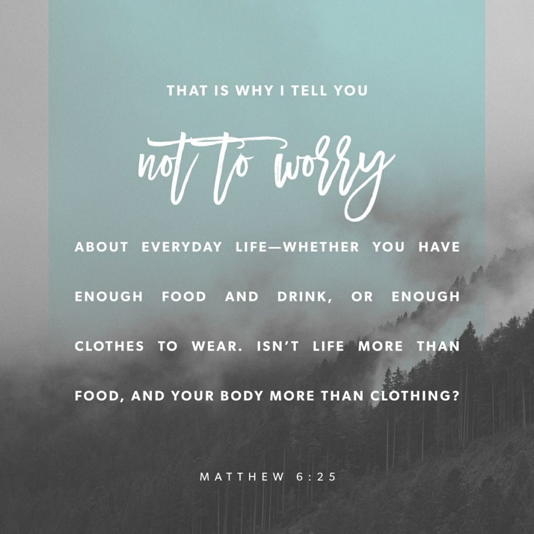 Therefore I say unto you, Take no thought for your life, what ye shall eat, or what ye shall drink; nor yet for your body, what ye shall put on. Is not the life more than meat, and the body than raiment?