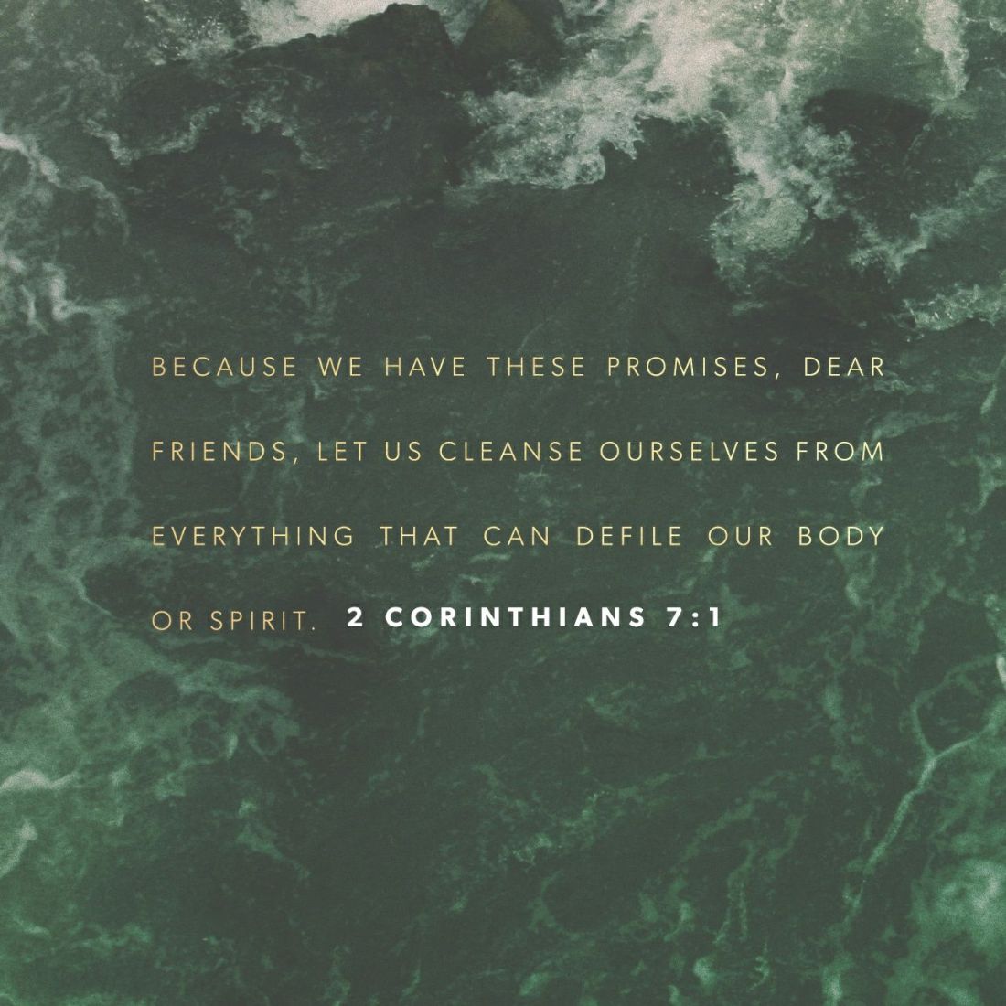 Having therefore these promises, dearly beloved, let us cleanse ourselves from all filthiness of the flesh and spirit, perfecting holiness in the fear of God.
