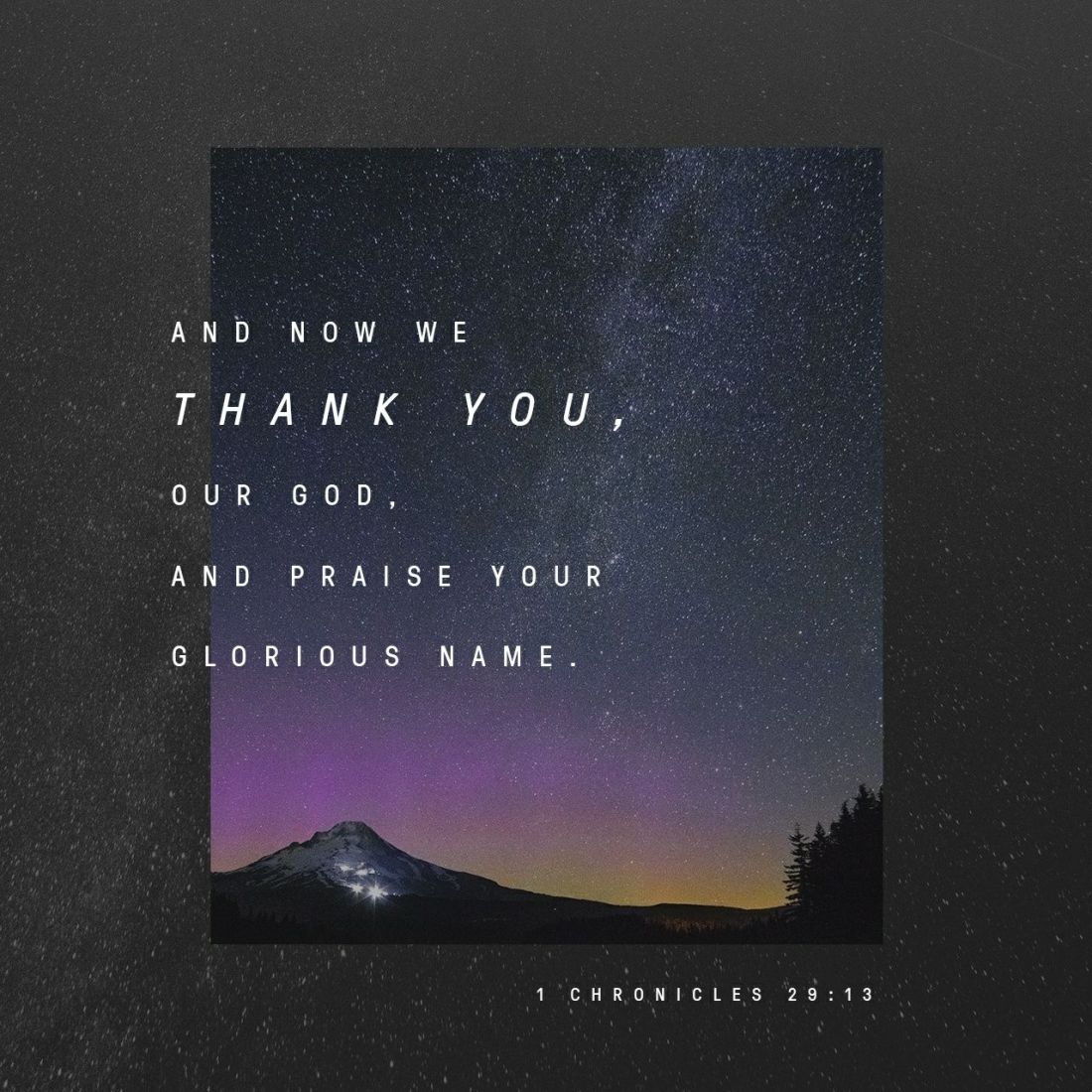 Now therefore, our God, we thank thee, and praise thy glorious name.