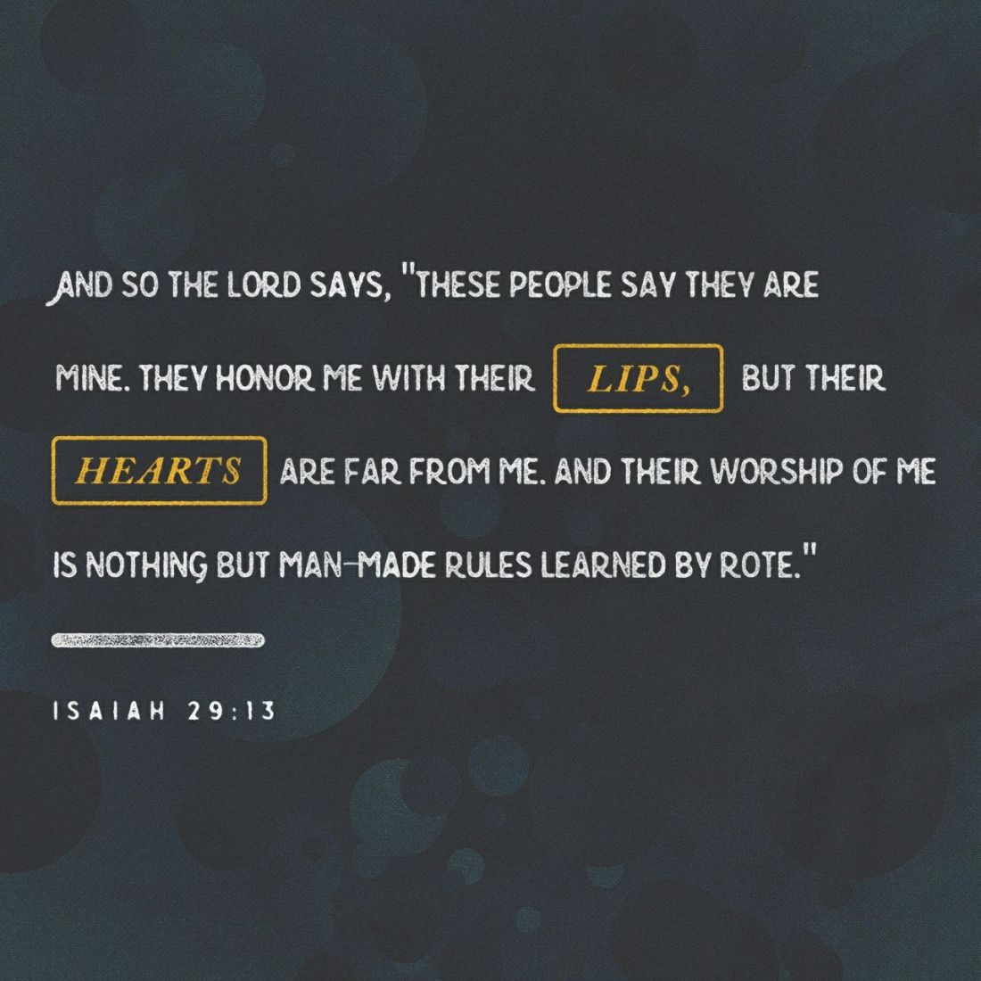 Wherefore the Lord said, Forasmuch as this people draw near me with their mouth, and with their lips do honour me, but have removed their heart far from me, and their fear toward me is taught by the precept of men: