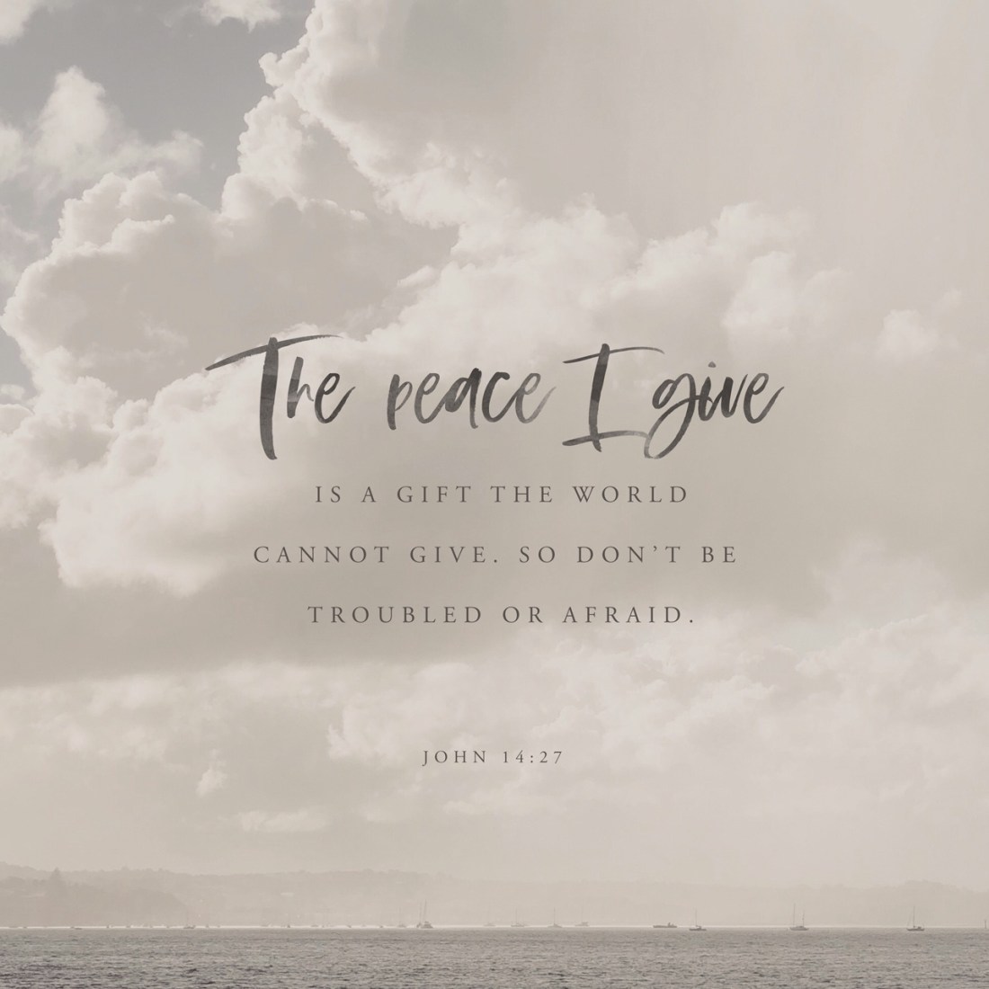 Peace I leave with you, my peace I give unto you: not as the world giveth, give I unto you. Let not your heart be troubled, neither let it be afraid.