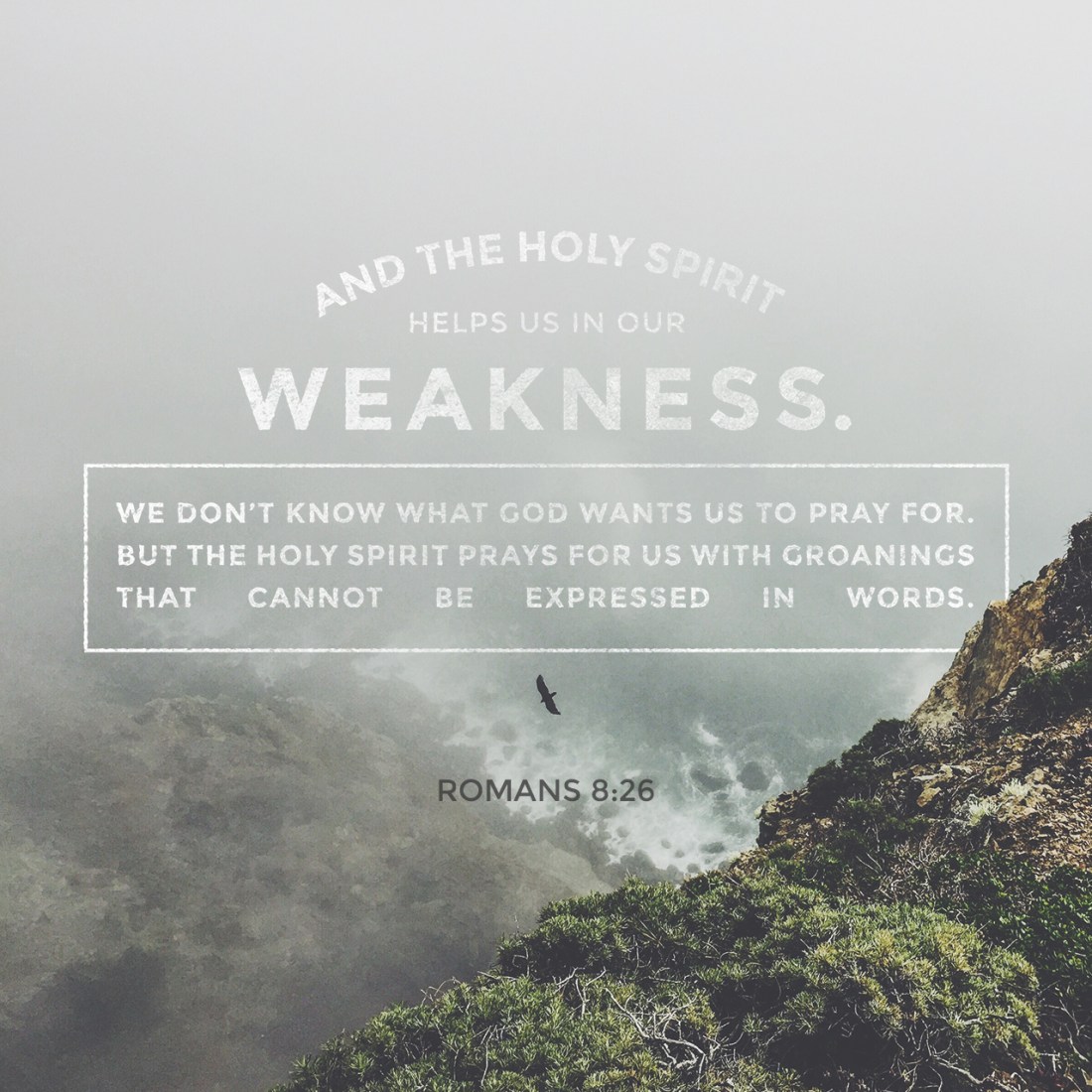 Likewise the Spirit also helpeth our infirmities: for we know not what we should pray for as we ought: but the Spirit itself maketh intercession for us with groanings which cannot be uttered.