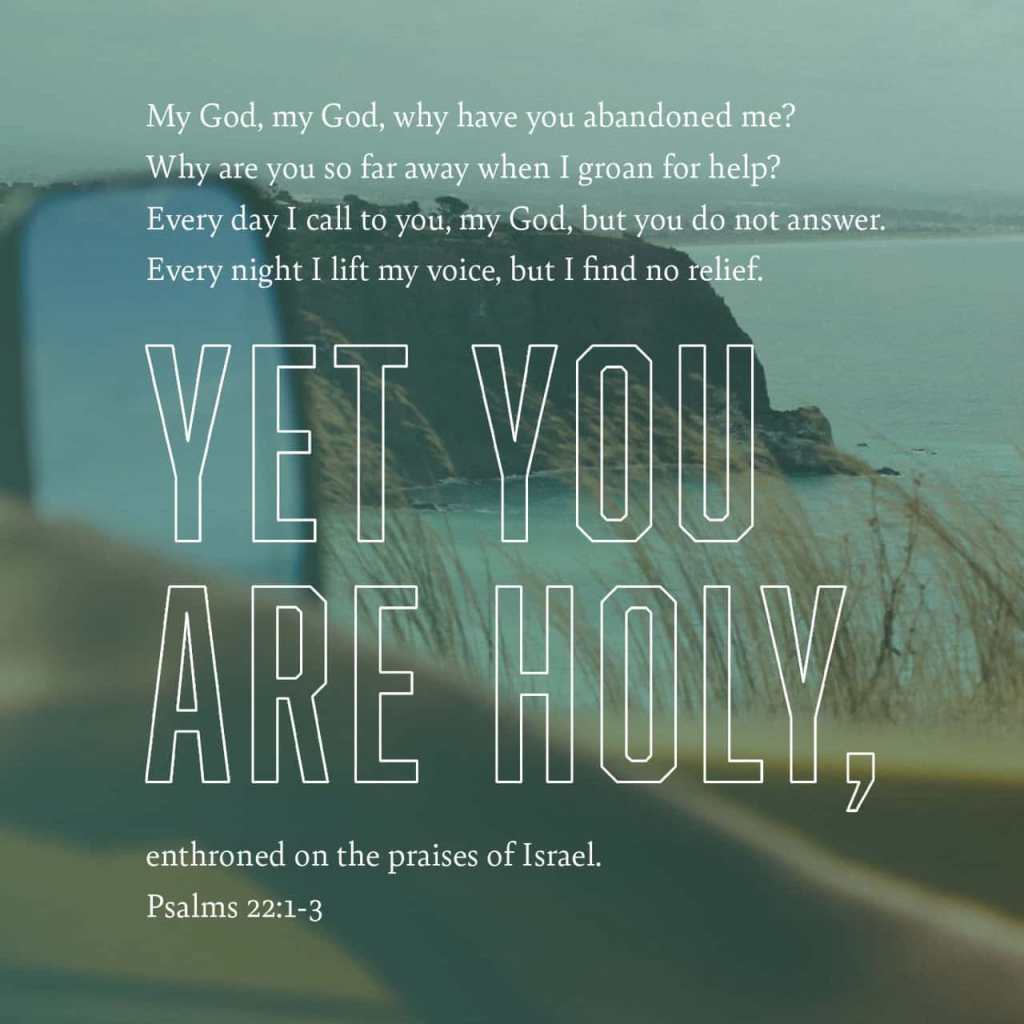 My God, my God, why hast thou forsaken me? why art thou so far from helping me, and from the words of my roaring? O my God, I cry in the daytime, but thou hearest not; and in the night season, and am not silent. But thou art holy, O thou that inhabitest the praises of Israel. Psalms 22:1-3 KJV https://bible.com/bible/1/psa.22.1-3.KJV