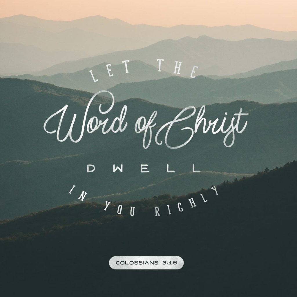 Let the word of Christ dwell in you richly in all wisdom; teaching and admonishing one another in psalms and hymns and spiritual songs, singing with grace in your hearts to the Lord. Colossians 3:16 KJV https://bible.com/verse-of-the-day/col.3.16/9161