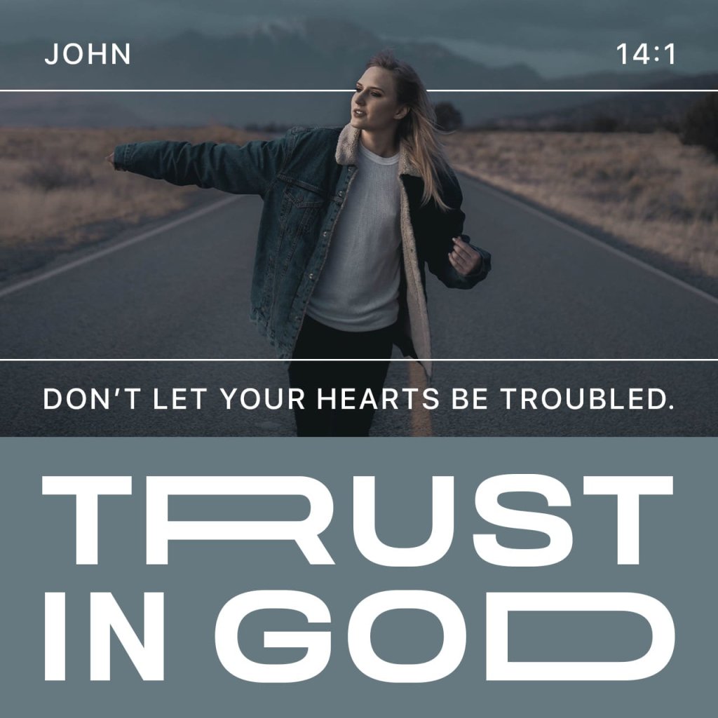 Let not your heart be troubled: ye believe in God, believe also in me. John 14:1 KJV https://bible.com/bible/1/jhn.14.1.KJV