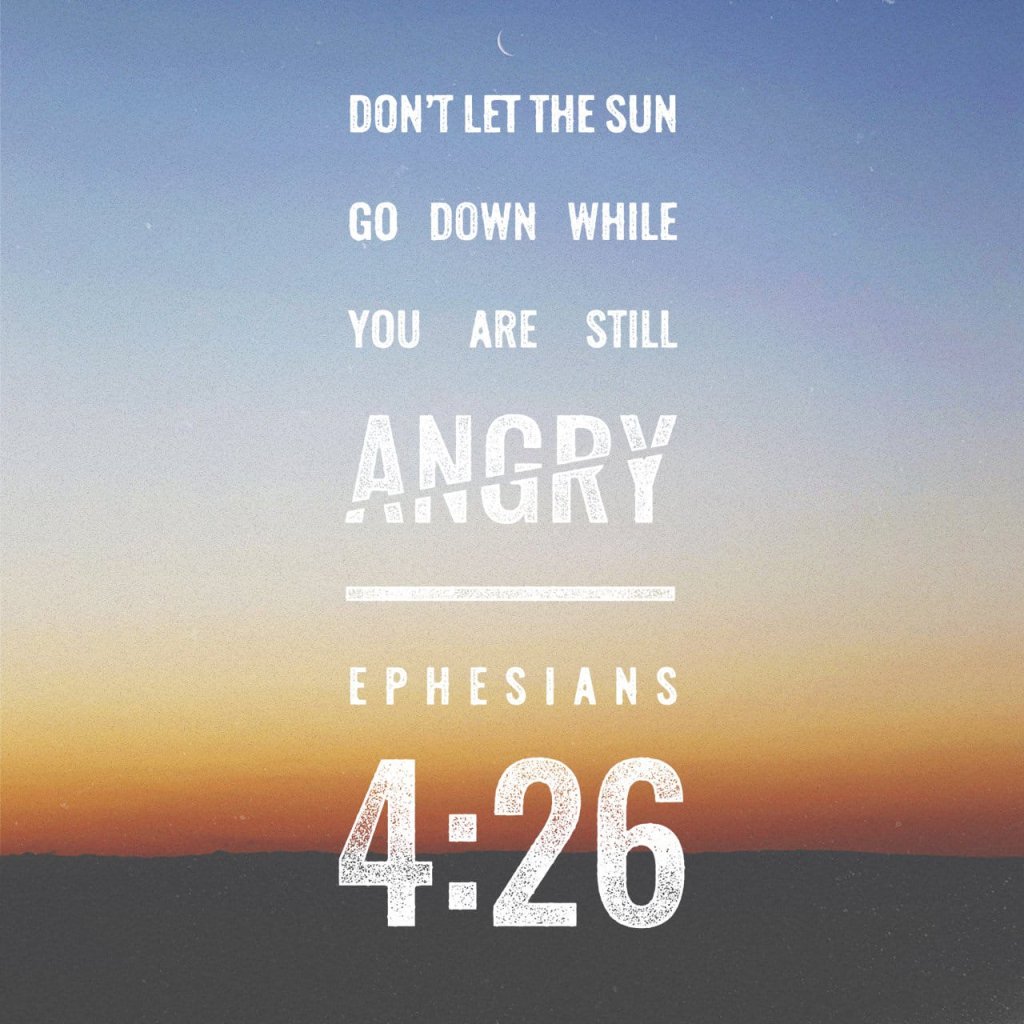 Be ye angry, and sin not: let not the sun go down upon your wrath: Ephesians 4:26 KJV https://bible.com/verse-of-the-day/eph.4.26/477