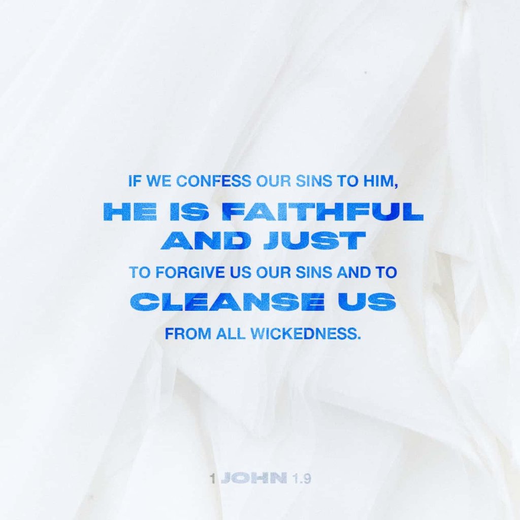 If we confess our sins, he is faithful and just to forgive us our sins, and to cleanse us from all unrighteousness. 1 John 1:9 KJV https://bible.com/bible/1/1jn.1.9.KJV