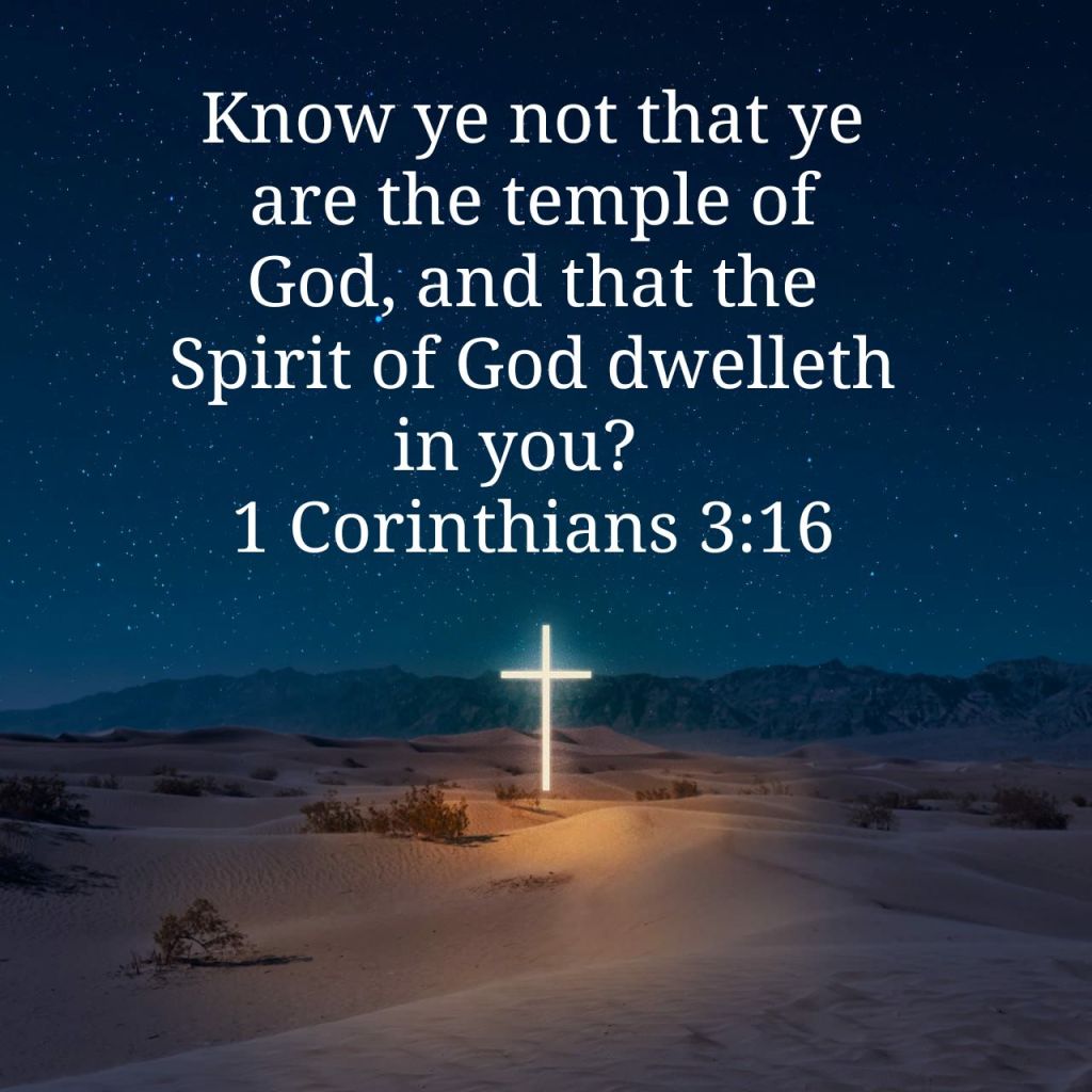 Know ye not that ye are the temple of God, and that the Spirit of God dwelleth in you? 1 Corinthians 3:16 KJV https://bible.com/bible/1/1co.3.16.KJV