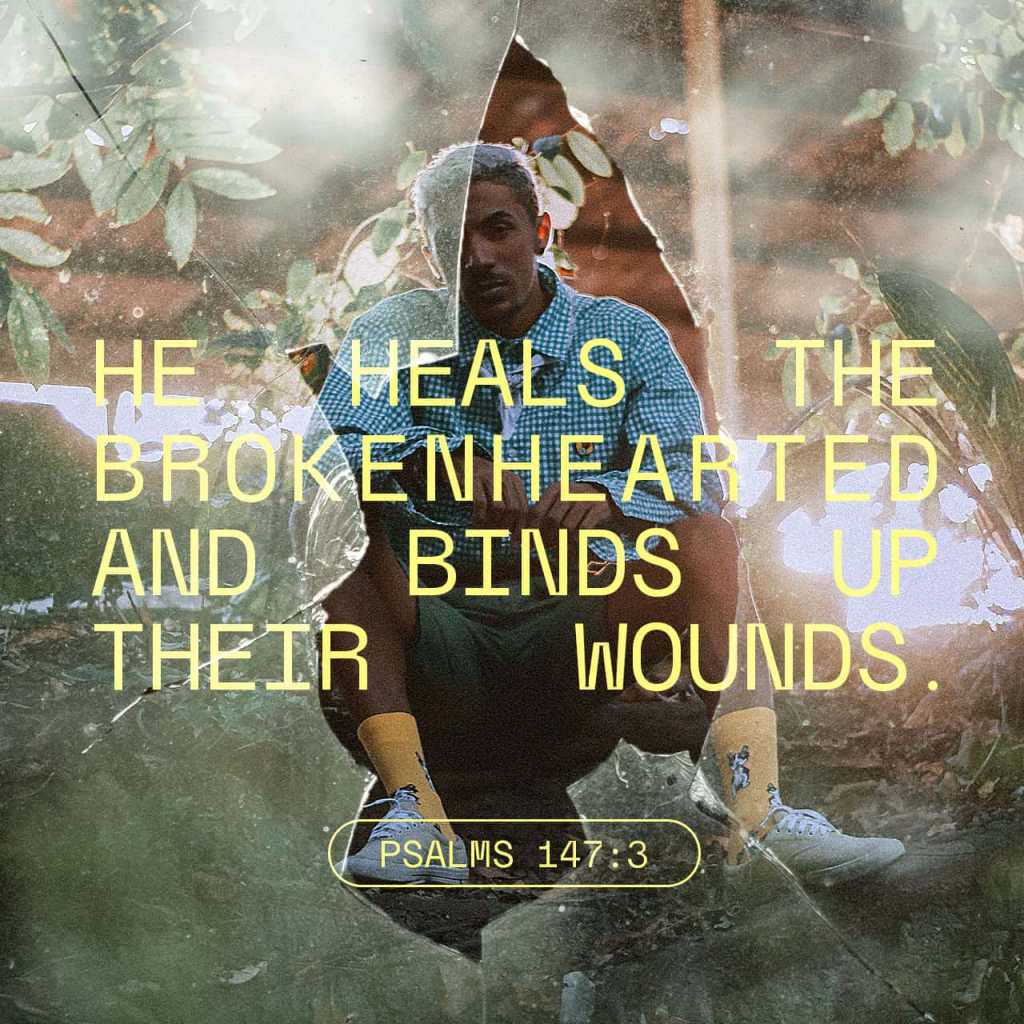 He healeth the broken in heart, and bindeth up their wounds. Psalms 147:3 KJV https://bible.com/bible/1/psa.147.3.KJV