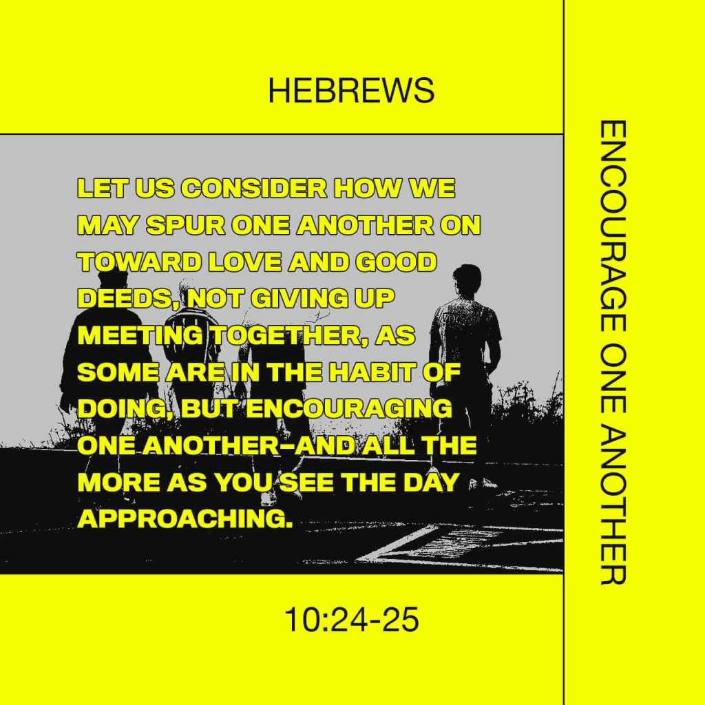 And let us consider one another to provoke unto love and to good works: Not forsaking the assembling of ourselves together, as the manner of some is; but exhorting one another: and so much the more, as ye see the day approaching. Hebrews 10:24-25 KJV https://bible.com/bible/1/heb.10.24-25.KJV