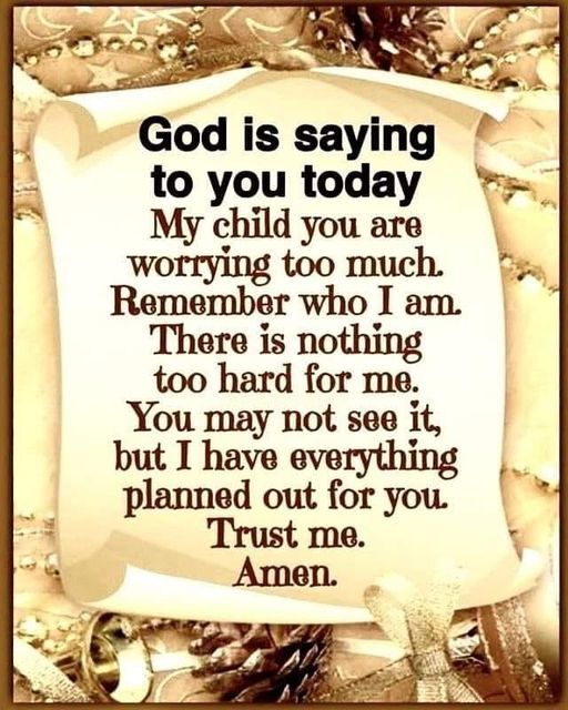 I know there are many things happening today and many of us have problems, medical and otherwise, that we can’t fix. But God can. Give your cares and worries to Him and He will take care of you.