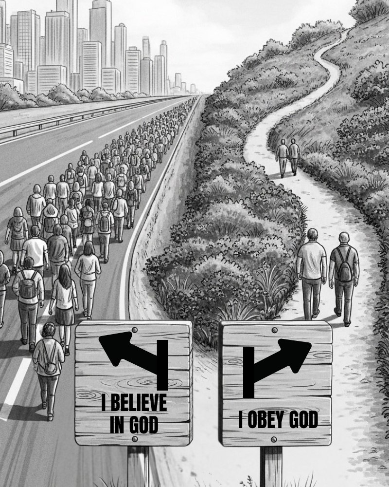 The Devil knows that God exists and even believes in God but he chose not to obey and serve God. Many people in the world are in the same place. They know Who God is but they choose not to believe in Jesus for their salvation nor will they obey God’s laws and commands. Jesus said that there are two roads that people are on. One of them is wide and smooth and one is rocky and small. One leads to an easy trip through life and one may not be as easy but where will you spend eternity? Your lifetime is only a puff of smoke compared to eternity…so where will you be?