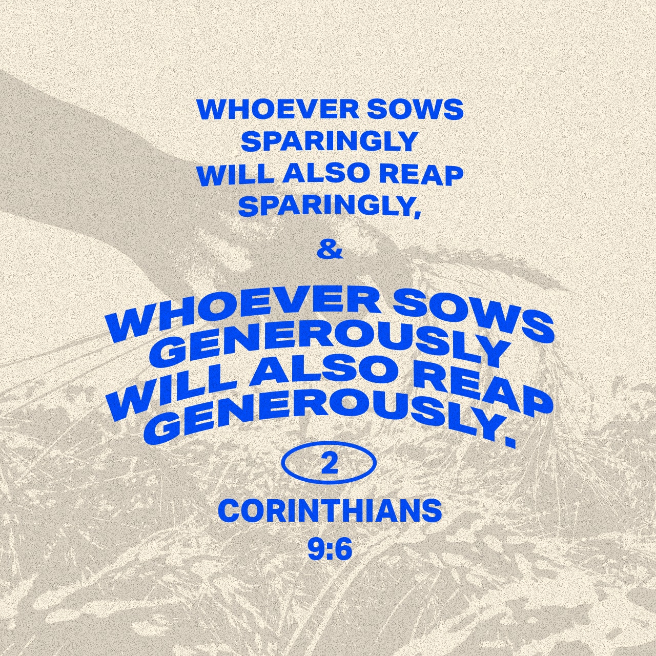 But this I say, He which soweth sparingly shall reap also sparingly; and he which soweth bountifully shall reap also bountifully. 2 Corinthians 9:6 KJV https://bible.com/verse-of-the-day/2co.9.6/77051