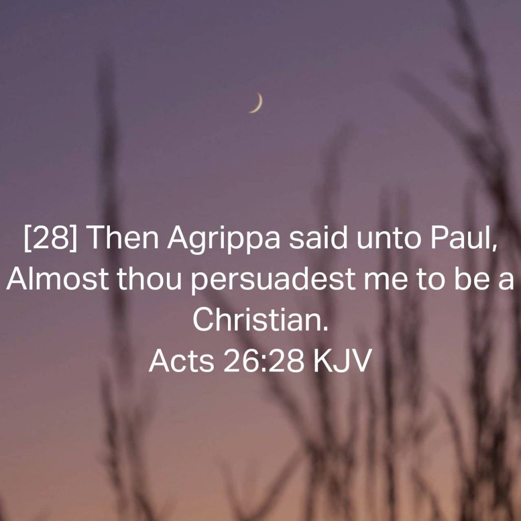This is what should not happen to us. Being almost persuaded means that you doubt God’s word and His ability to bring salvation to you. The problem with this unbelief is that Jesus finished God’s plan on the cross and when He came out of the tomb. In these words, it doesn’t sound like much but Jesus made the Way to Heaven for us through Him and our belief in His accomplishments.