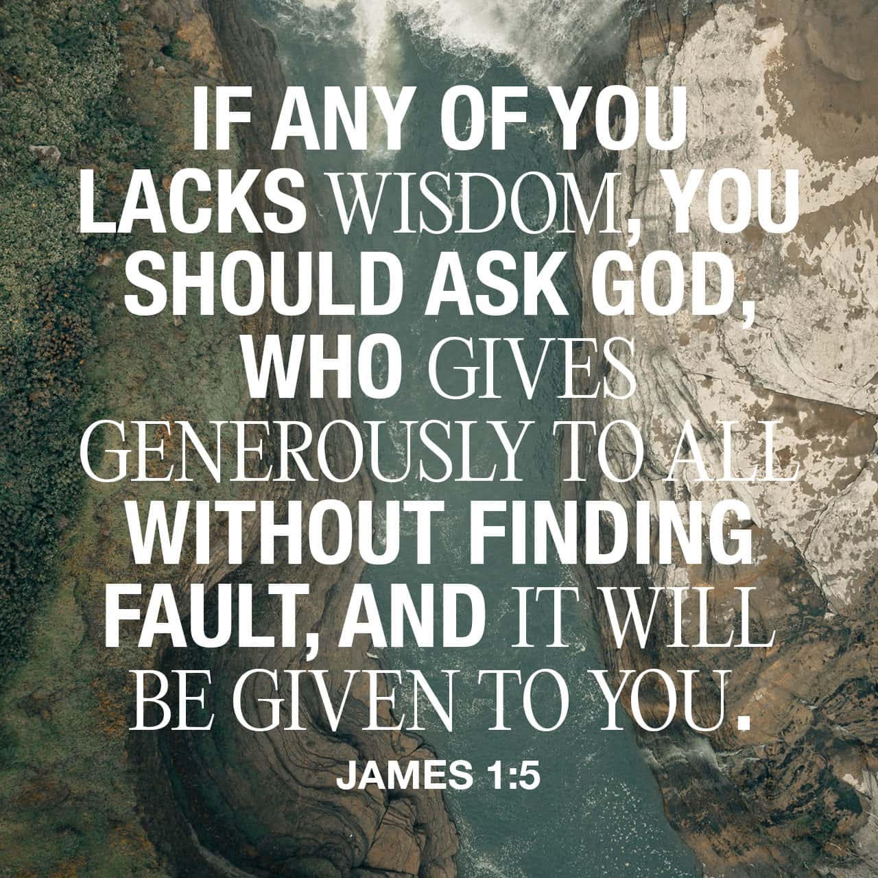 If any of you lack wisdom, let him ask of God, that giveth to all men liberally, and upbraideth not; and it shall be given him. James 1:5 KJV https://bible.com/verse-of-the-day/jas.1.5/68509